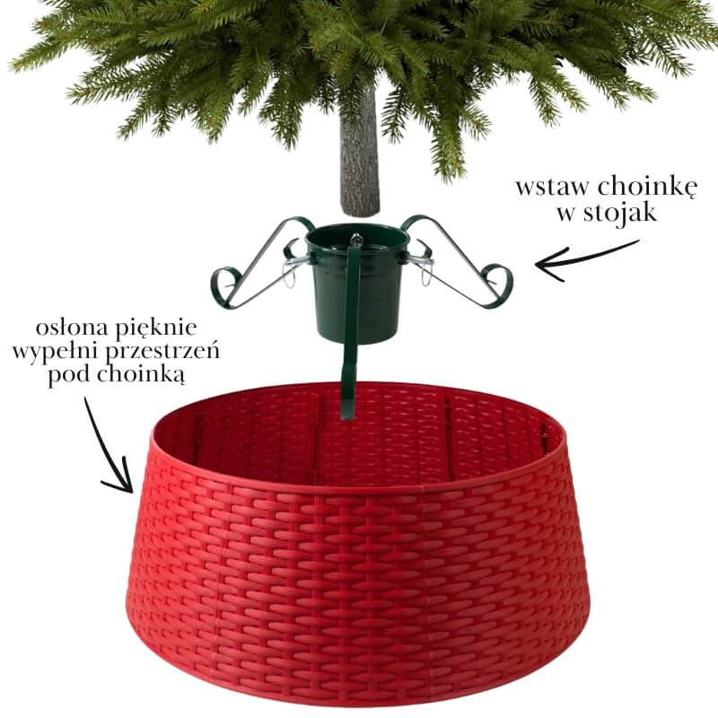 Praktyczna osłona pod choinkę H2203-23R to dekoracyjny element, który zmieni wygląd każdego drzewka świątecznego. Jej czerwony kolor wprowadza ciepłą, świąteczną atmosferę do wnętrza, a efektowny splot przypominający koszyk doskonale komponuje się z tradycyjnymi i nowoczesnymi aranżacjami.